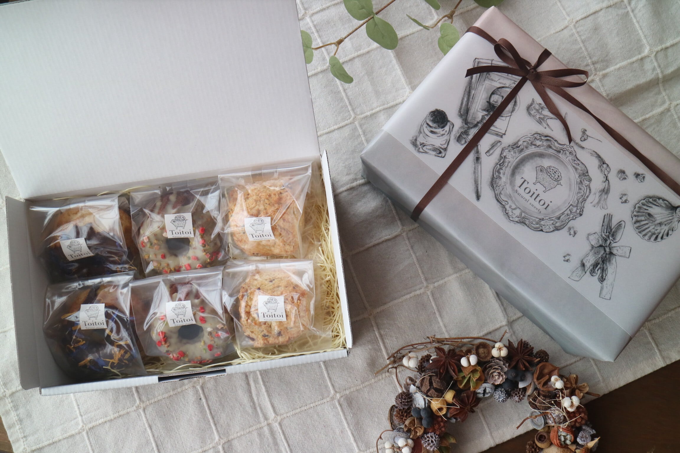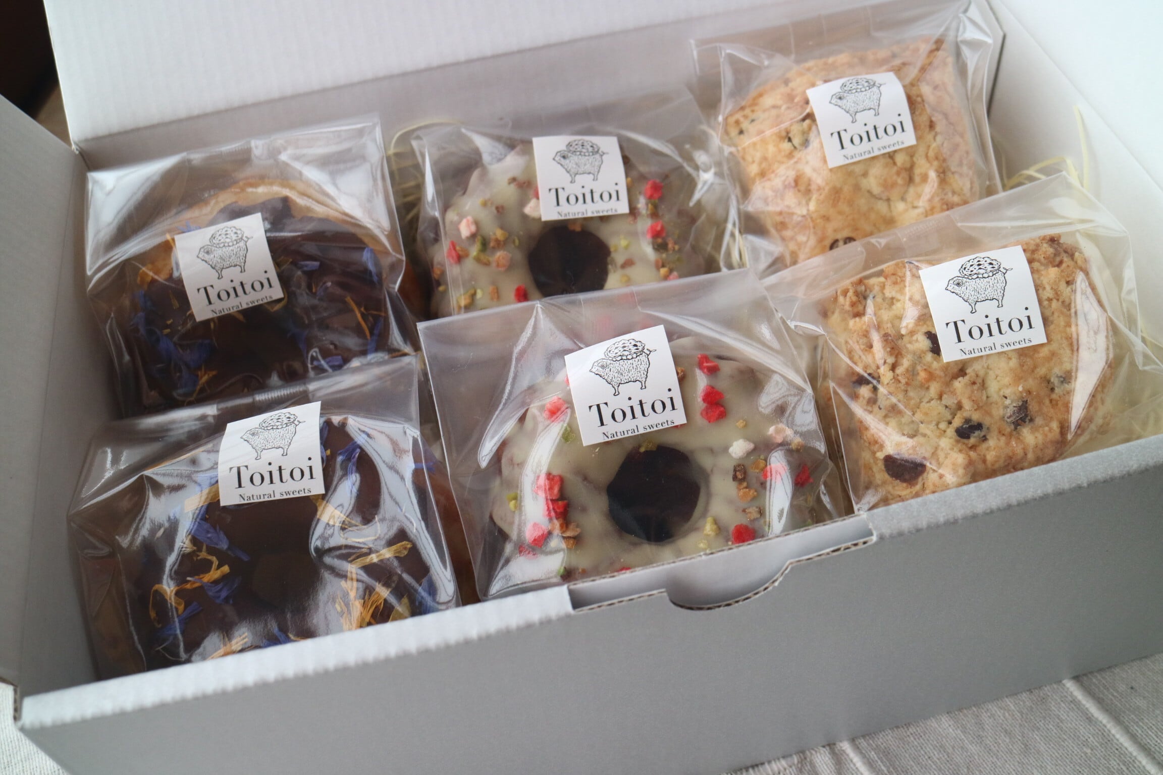 ヴィーガンホワイトチョコ&ココアクグロフ2個、ダークチョコ&アーモンドクグロフ2個、カカオニブ&甘夏スコーン2個