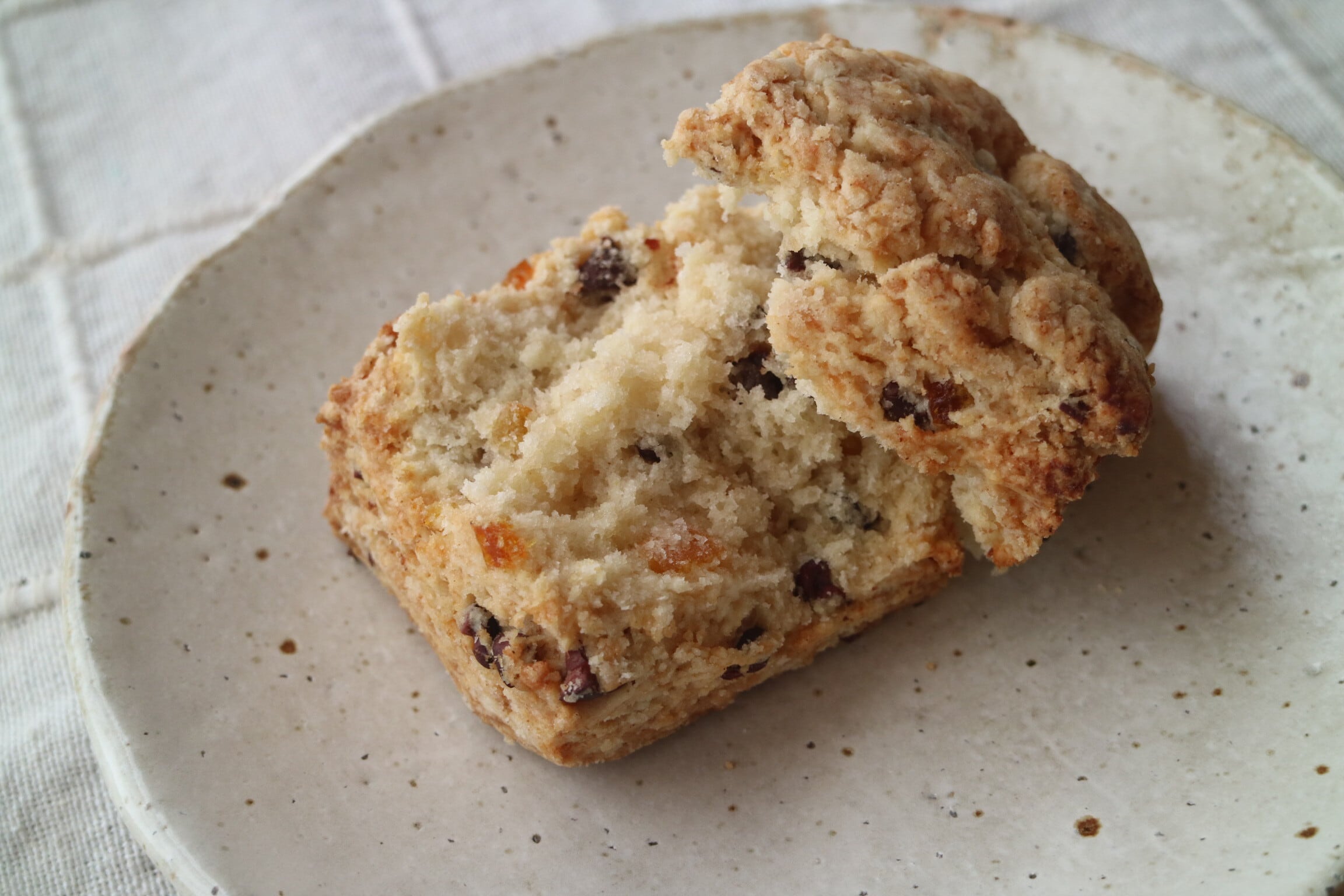 香り豊かな台湾産カカオニブ、店主が育てた甘夏を使用した自家製ピール、有機チョコチップを混ぜ込みました。