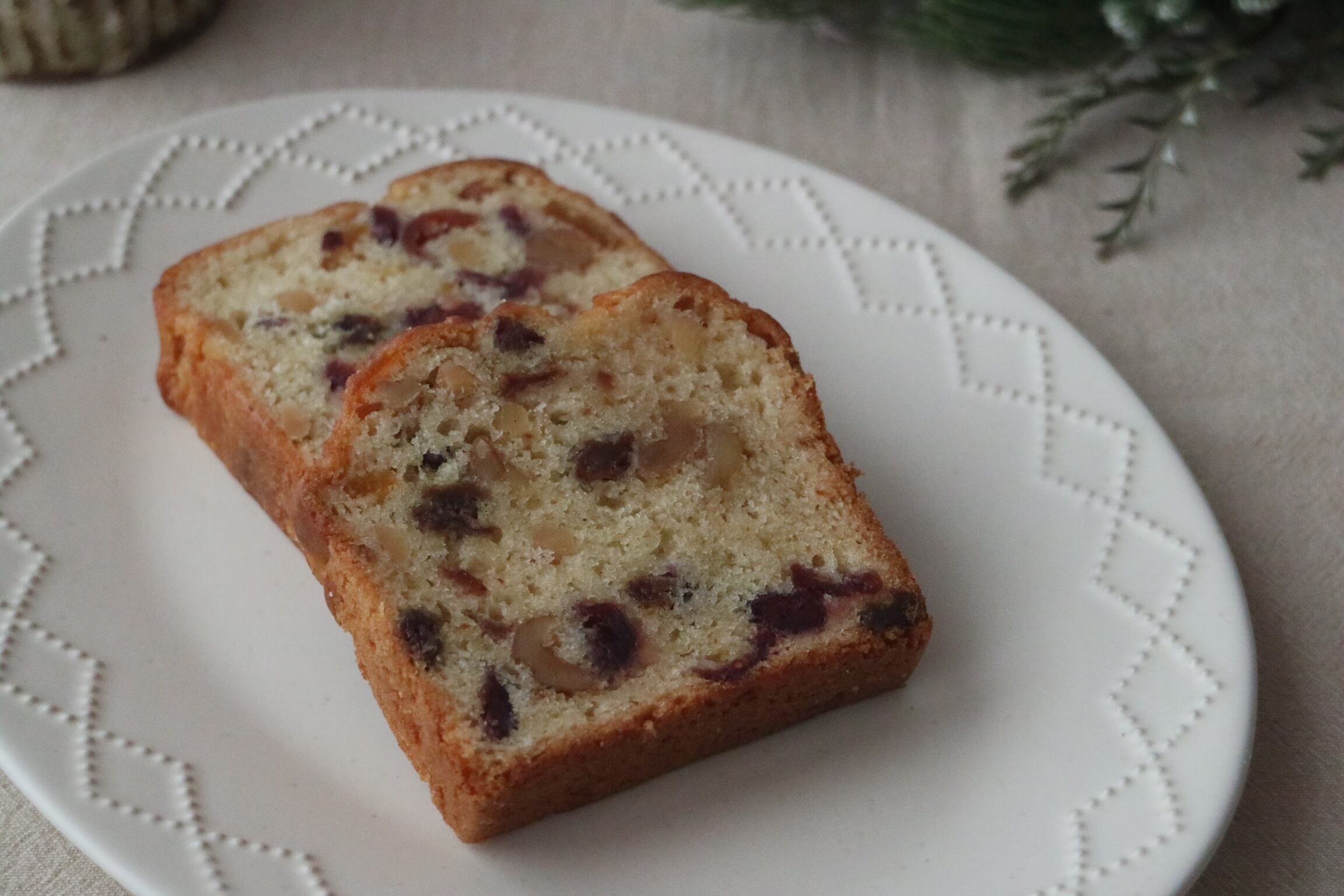 自家製柑橘ピール、有機クランベリー、レーズン、アーモンド、くるみをたっぷりと混ぜ込みました。