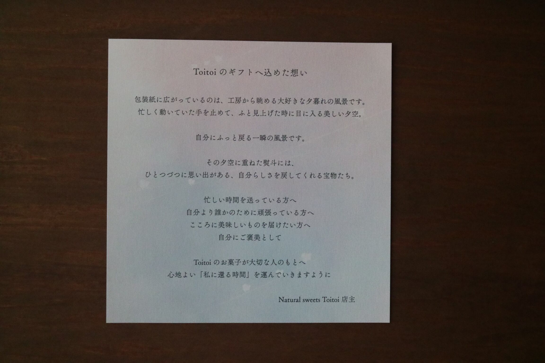 ・Toitoiオリジナルのギフトストーリーカードを同封致します。